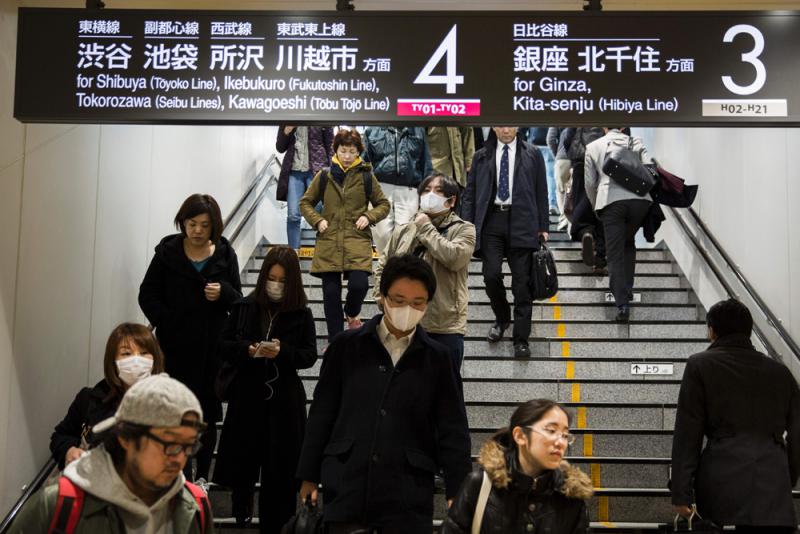 圖:日本家庭開支連續第十一個月下跌,反映消費者並不預期工資將會上升;圖為東京中目黑地鐵站\法新社