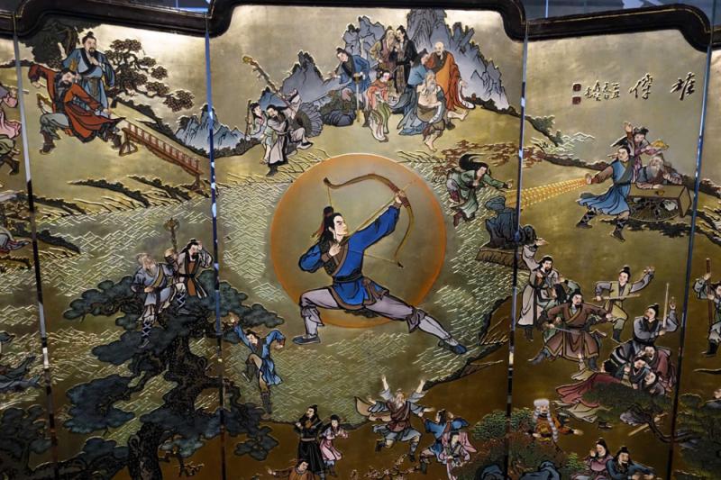 圖:金庸館展出《射鵰英雄傳》小說人物的屏風
