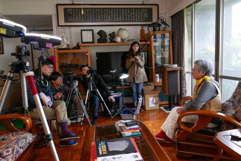 圖:導演侯季然(左一)訪問和拍攝被稱作「台灣民歌之母」的廣播人陶曉清(右一)\UA Cinema供圖