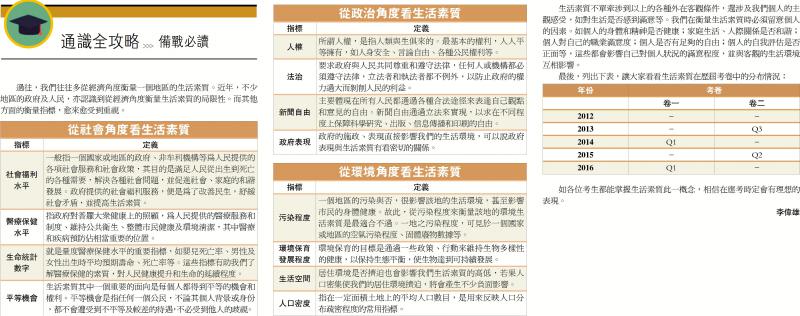 最後,列出下表,讓大家看看生活素質在歷屆考卷中的分布情況: