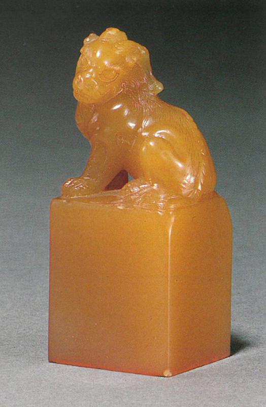 「田黃」石雕中,也有不少冒充者與贋品;一定要萬分小心鑑別,不要為石商美言所惑。例如,一些玩石者認識不深、經驗不足,輒把有些品種壽山石天然的「牛毛紋」誤以為是「田黃」的「蘿蔔紋」。「鹿目格」、「掘性都成坑」和老坑高山石,也偶現「牛毛紋」;後者則更顯寬鬆,細察之下與「蘿蔔紋」有別。切勿以為有「紋」就是「田黃」,錯把馮京作馬涼。附圖為「黃杜陵」(上品「都成坑」);乃清代石雕獸鈕方章,近似田石,質素甚佳,也有假「蘿蔔紋」,但紋曲而小;「田黃」上品的紋路直且綿密,有些或呈似未化的糉粒狀。