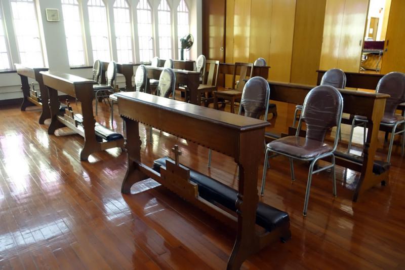 圖:聖嘉勒學校小堂保留早期跪櫈