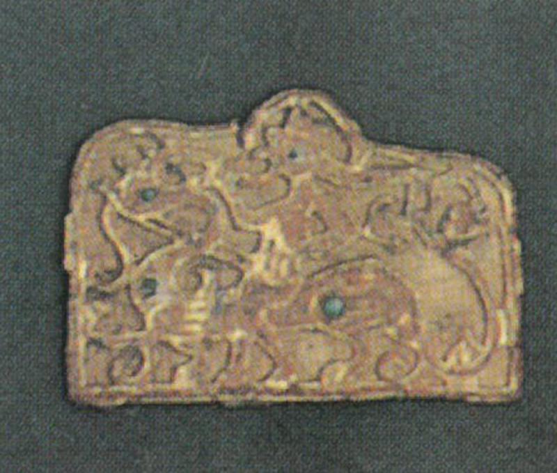春秋秦墓遺址(如陝西鳳翔及寶雞),曾多次發掘出金方泡、金泡、金節約等車馬金飾件,但未見銀製者。每一飾件長不逾五公分,重約數十克;可見春秋時期金飾製作工藝技術和水準有限。至戰國時期,受北方胡人金冠飾影響,這方面的鑄製、捶打與鏨刻等技巧,有了很大進展。從前在內地一些博物館,曾見戰國鎏金獸型小飾件、駱駝圖紋金衣飾片、獅型金箔衣飾件(新疆阿拉溝出土)和神話怪獸雕鏤飾件(內蒙古西溝畔出土)等,皆有明顯的時代風格及地區特色,乃認識與研究古代地域衣飾和文化的一些重要依據。