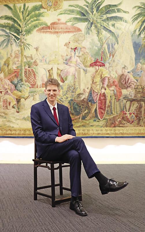 是次展出的掛毯於一七五九年在博韋製造廠編織而成,命名為《中國皇帝掛毯》,描繪了法國人想像中的中國帝王活動景象,體積龐大且保存完好。該系列一套共六件,完成一套需時三年,當年共打造了十套,其中四套為法國皇室所用,掛毯上織出的金色畫框和法國國徽便是供給皇室所用的標誌。