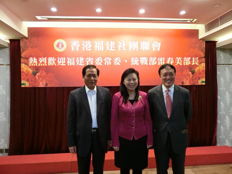 圖:香港福建社團聯會主席吳良好(左一)感謝雷春美部長(中)時常惦記香港百萬閩籍鄉親