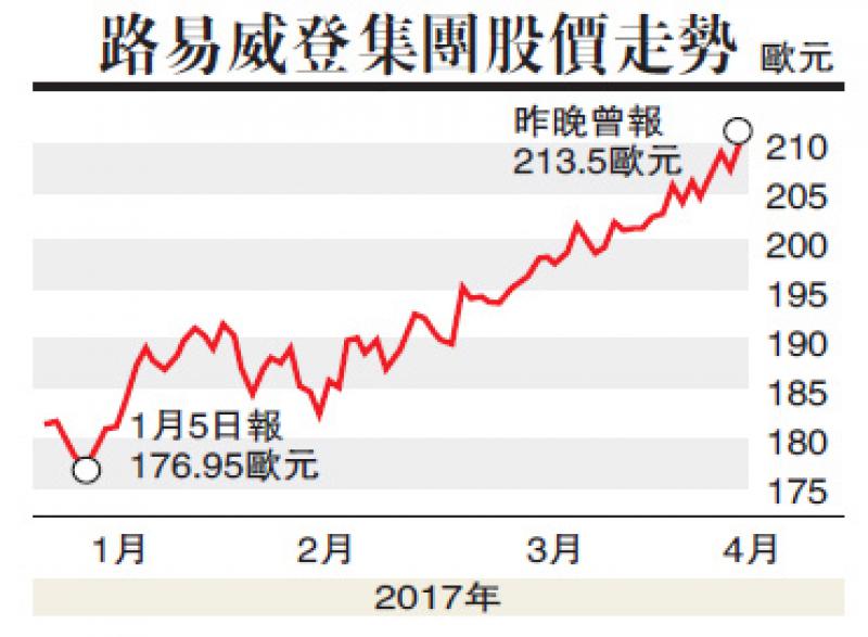 LVMH業務表現強勁,刺激該公司周二股價曾升2.92%,每股高見213.5歐元,創歷史高位,並成為法國CAC 40指數中表現最佳股份;而法國CAC 40指數則一度跌0.4%。其他奢侈品牌股份跟隨LVMH股價上揚,法國Kering集團股價曾漲1.1%,愛馬仕股價一度升0.9%,同樣觸及新高;瑞士Richemont股價曾升0.8%。