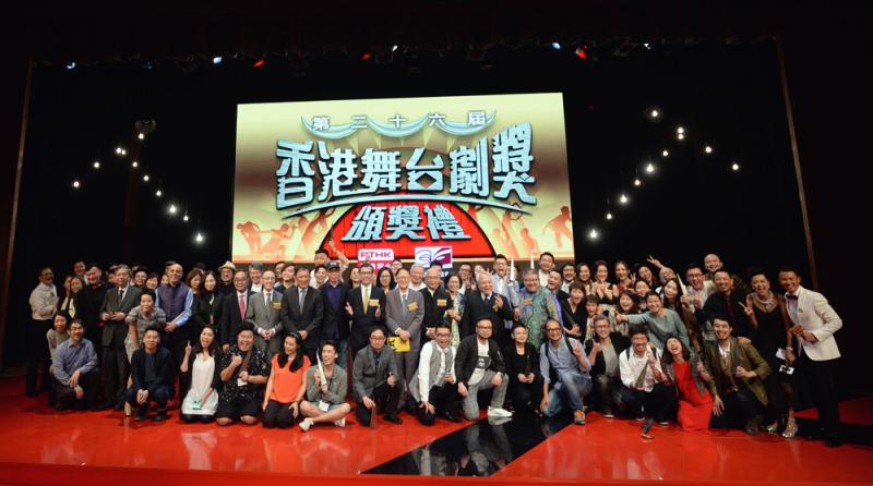 圖:本屆舞台劇獎的得獎者及嘉賓等合照 大公報記者林良堅攝