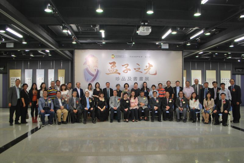 圖:賓主在「孟子之光」珍品及名家書畫展上合照