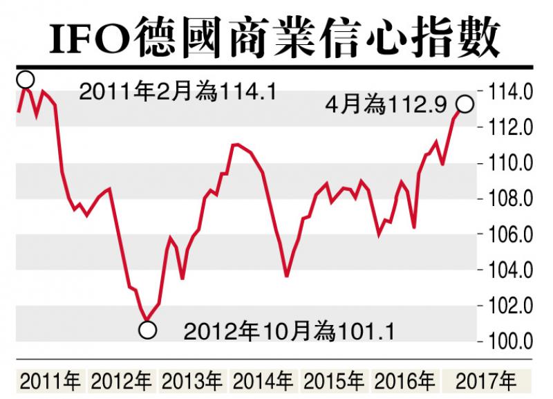 Ifo經濟師表示,德國經濟未受世界政局不明朗所影響,首季德國經濟表現應該向好。然而,有分析師的看法較為審慎,Capital Economic分析師認為,商界對前景較之前略為看淡,可能反映增長或接近見頂。Ifo每月發布的調查指數來自對約7000間企業的數據,周一的數據是2011年7月以來最高。