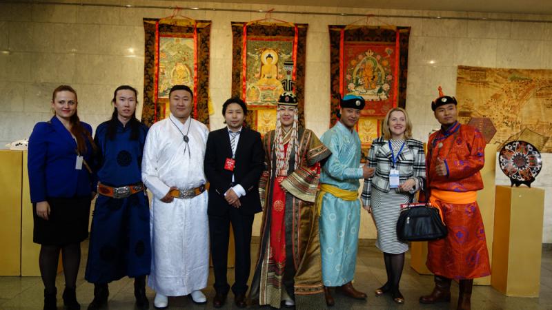 圖:海峰嶺(左四)帶世界非物質文化遺產之一的「熱貢唐卡」藝術參加中烏文化周 主辦方供圖