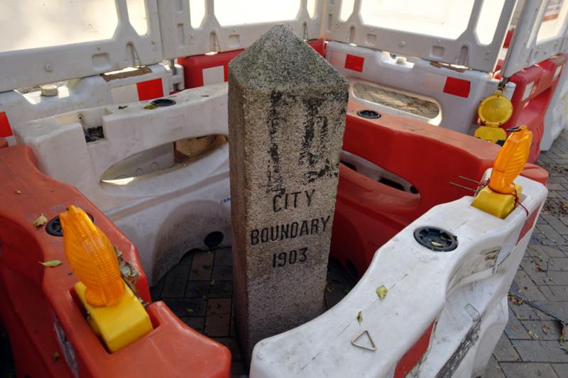 這六支城市界石至今不倒,刻在上面的英文字(City Boundary)和年份(1903)仍清晰可見。從它們所在位置可知昔日維多利亞城的邊界,界石以外的地方就是郊區。今天我們無法想像,黃泥涌道以東曾是一片荒蕪之地。最早在此邊陲出現的大型建築物是聖保祿女修會的加爾瓦略會院,亦即今天的聖保祿天主教小學。