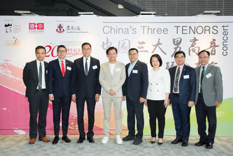 圖:香港北京交流協進會會長施榮懷(左三)和國際著名男高音莫華倫(左四),與東華三院主席李鋈麟(右四)、東華三院副主席暨籌募及企業傳訊委員會主任委員馬清揚(左二)等合影