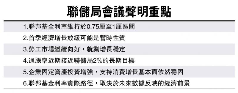聯儲局過去兩天議息,一致決定維持聯邦基金利率於0.75厘至1厘,預期經濟將由首季疲弱情況反彈,並且重申逐步加息步伐。與會官員討論如何降低聯儲局持有的按揭證券和國債,但議息聲明沒提供詳細情況。巴克萊首席美國經濟學者表示,聯儲局雖沒提供討論證券組合詳情,也沒轉變利率政策,但聯儲局發出今年維持利率正常化步伐信息。