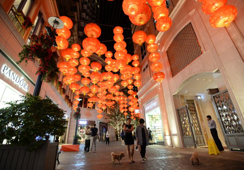 利東街俗稱「囍帖街」,是昔日香港著名印刷品製作及門市集中地,尤其以印刷喜帖著名。該處商場共三層高,地面提供逾170米長的綠化林蔭大道,中西合璧、新舊交融。記者走入利東街,最為吸睛的是大紅燈籠高高掛,清風徐來,高掛的紅燈籠隨風搖擺,像是飄來喜慶的歡樂氣氛。
