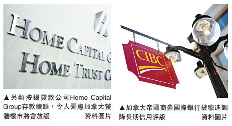 另類按揭貸款公司Home Capital Group存款續跌,令人憂慮加拿大整體樓市將會放緩;與此同時,加拿大家庭住戶債務的水平卻愈來愈高。Home Capital Group出事,令加拿大的金融機構亦受到牽連,這些銀行的股價在過去便一直下跌,原因是憂慮Home Capital Group的壞影響將會擴散。