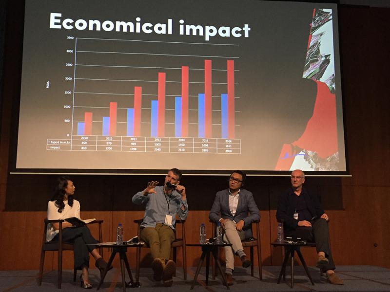 圖:Grimur Atlason(左二)講述冰島電波音樂節的經濟效益/大公報記者謝敏嫻攝