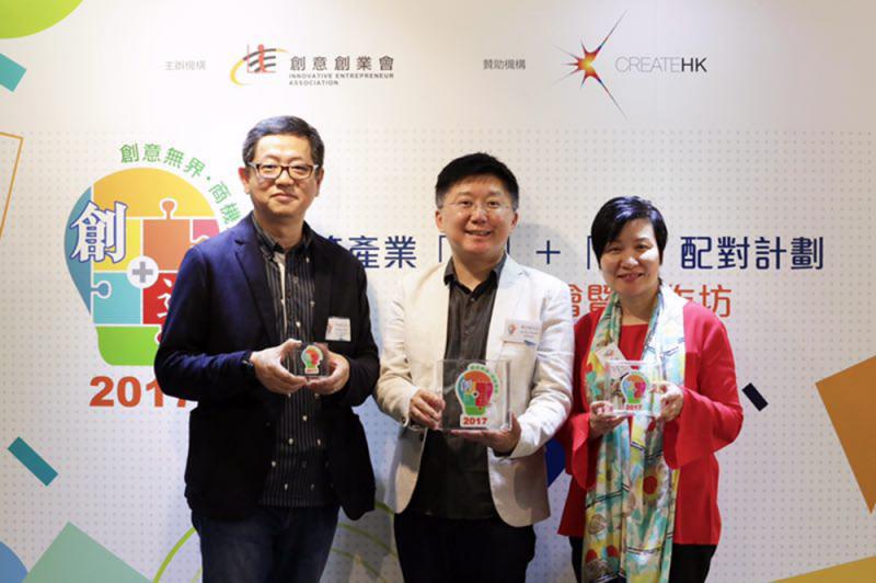 圖:「跨產業『創』+『造』配對計劃2017」籌委會主席傅備斌(左起)、創意創業會會長關志康,及「創意香港」高級經理鄺惠霞合影\主辦方供圖