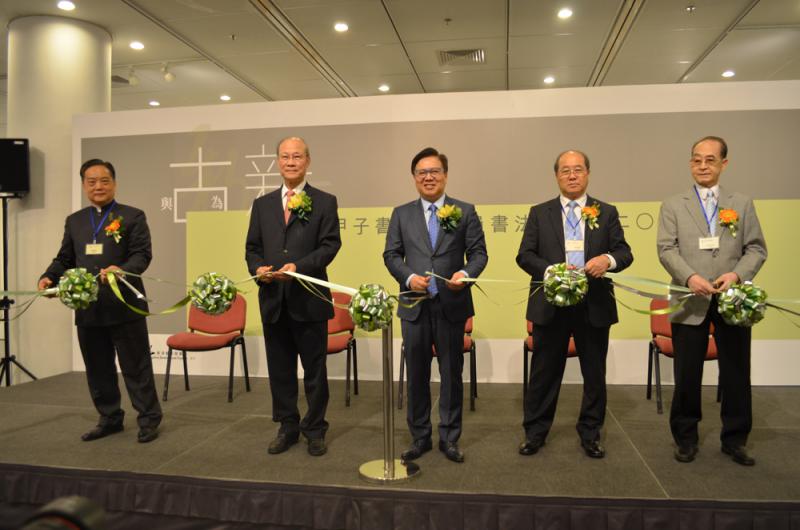 香港藝術發展局主席王英偉,甲子書學會會長蘇樹輝,甲子書學會副會長馬潤憲、李紀欣及郭耀偉,昨日作為主禮嘉賓出席開幕儀式。王英偉致辭時表示:「讓年輕一代了解中國書法,展覽和導賞是很有效的方法。是次展覽涵蓋由殷商至明清各種書體的碑帖,由創作題材到表現形式都豐富多樣,承傳與創新兼備,除了讓大家看到中國書法的源流及蛻變,亦希望透過書法藝術弘揚中國傳統哲理,相信定能讓參觀的朋友在欣賞中國書藝的同時,亦能領略中國傳統文化的真、善、美。」