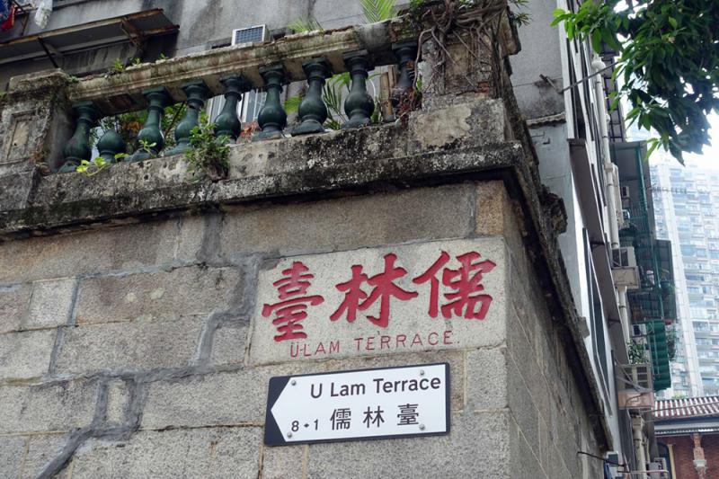 麻石高牆上刻了「儒林臺」的中英文名字,當年政府將之改為「裕林臺」,可能與香港經濟起飛有關,讓居民感到生活富裕。然而改名後的街牌卻釘在石刻名字下方,上面由右至左寫,下面由左至右,一看便知道哪個是舊名。