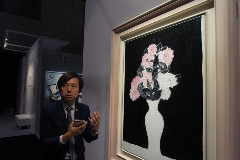 佳士得亞洲當代藝術拍賣主管關尚鵬介紹明晚的領拍之作——常玉《白瓶花卉》(估價四千五百萬至五千五百萬港元)時表示:「這幅畫創作於上世紀三十年代,為畫家『粉紅時期』關鍵作品,常玉將每一片花瓣皆面向觀者,卻獨留一朵花及花莖背向觀者,且添加平衡畫面空間的白色邊框,將中國畫的留白與西方的三度空間構圖觀念巧妙融合。」