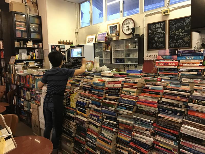 圖:Books & Co.的吧枱藏於書堆後 大公報記者梁舒婷攝