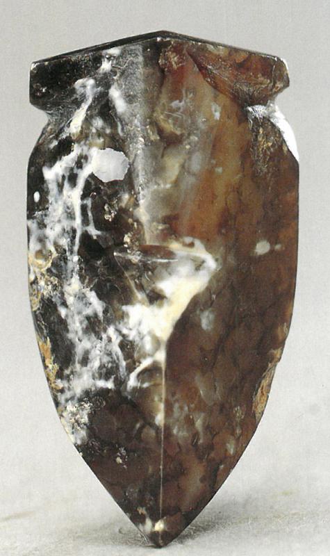 還有一種高古玉蟬,不但無任何小孔,而且較小型,大小與人舌相若,稱為「琀蟬」(一作「唅」),是筆者深感興趣研究的一種。古人迷信,不欲見親人「空口而去」,從唅生米(稱「飯唅」),以至權貴唅珠玉(見《後漢書》),俱有涵意。自殷至漢墓中皆有出土琀蟬,置死者舌頭上。《三柳軒雜識》形容「片玉甚薄,上銳下闊,多壓舌,殉葬含玉。」那時風尚興琢成簡單蟬形;瞿中溶《奕載堂古玉圖錄》謂:「則人之死,其屍首有似於蟬之蛻。」正如唐代釋貫休《禪月集》詩云:「再來尋師已蟬蛻,薝蔔株枯醴泉竭。」古人認為蟬的幼蟲從污穢的泥土下(如塵世間),化蛹蛻變為蟬,高居樹上,好比再生,變為高潔。