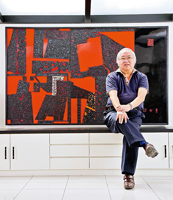 圖:李錫奇在他的作品前 主辦方供圖
