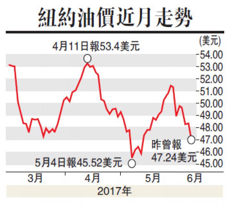 根據能源資訊署,美國原油產量每天約達934萬桶,隨着美國石油產量上升,意味會打擊油組的減產努力。在一周前,油組與非油組成員國在維也納開會,同意延長減產協議多九個月,直到2018年3月。市場本來預期會有更大的減產規模,因而當油組宣布減產只是延長九個月後,油價一度大跌。自油組在5月25日決定延長減產協議以來,油價跌約9%。