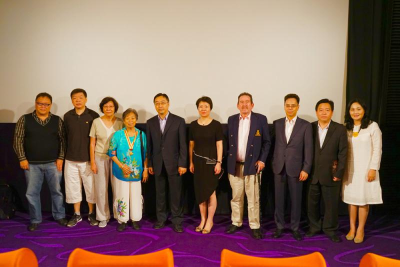 圖:導演劉深(左一),老戰士及其後代,製作人員等合影 主辦方供圖