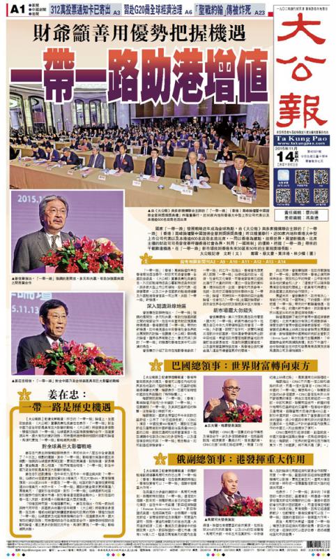 中國在時代中前行,香港在時代中前行,《大公報》也在與時共進中時時思考自身的定位和使命。如果說回歸前《大公報》的定位可以用為民代言、持節報國來形容,那麼在香港回歸後,《大公報》的主旋律則是立足香港,胸懷祖國,支持特區政府依法施政,宣傳中國發展的宏圖大略,增進香港同胞對祖國的了解、推動香港與內地的交流合作。回歸二十年來,《大公報》朝着這個方向努力,不斷擴大影響,作出自己的貢獻。