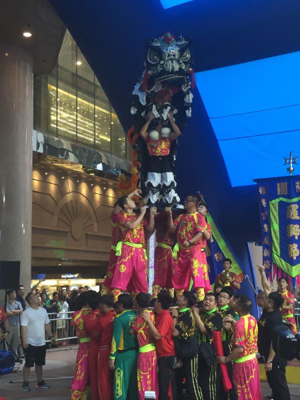 【大公報訊】記者王豐鈴報道:「醒獅」是在香港流傳已久的民間表演,具有期盼吉祥、酬神娛人的意義,今天,醒獅已從娛樂活動發展成一項運動,名揚海外。由香港時代廣場主辦的「國際醒獅節」昨日在時代廣場舉行開幕禮,邀請香港拳王曹星如作為嘉賓為是次活動揭幕。逾五十位來自不同國家的醒獅隊員現場合力表演「傳統三層疊羅漢醒獅採青」,引現場觀眾歡呼叫好。