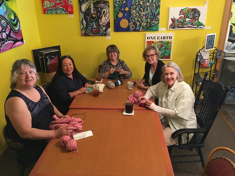 Cindy拿着她的織品說:「這是一件披肩,為我女兒織的。」Tonia在為朋友織斗笠,她母親是日本人。Mary在給孫女織衣服,快完工了。Sue勾的是一個裝飾品。Linda在編織一頂帽子,化療病人的專用帽子。說到這裏,這兩位女人的事跡一定要告訴你:Linda和Cindy。