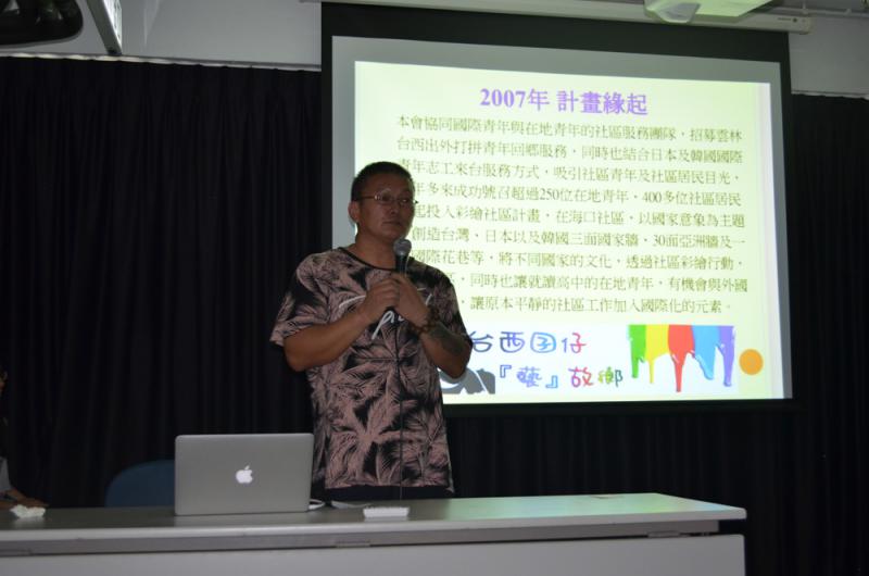 圖:丁仁桐分享台西彩繪村的社區活化經驗 大公報記者王豐鈴攝