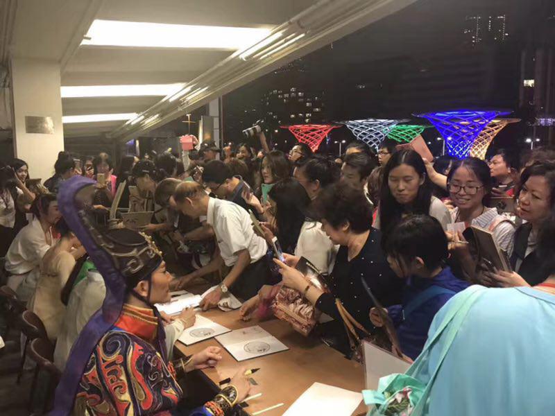 圖:《孔子》演出後,觀眾爭相索取簽名及合影\大公報記者王豐鈴攝