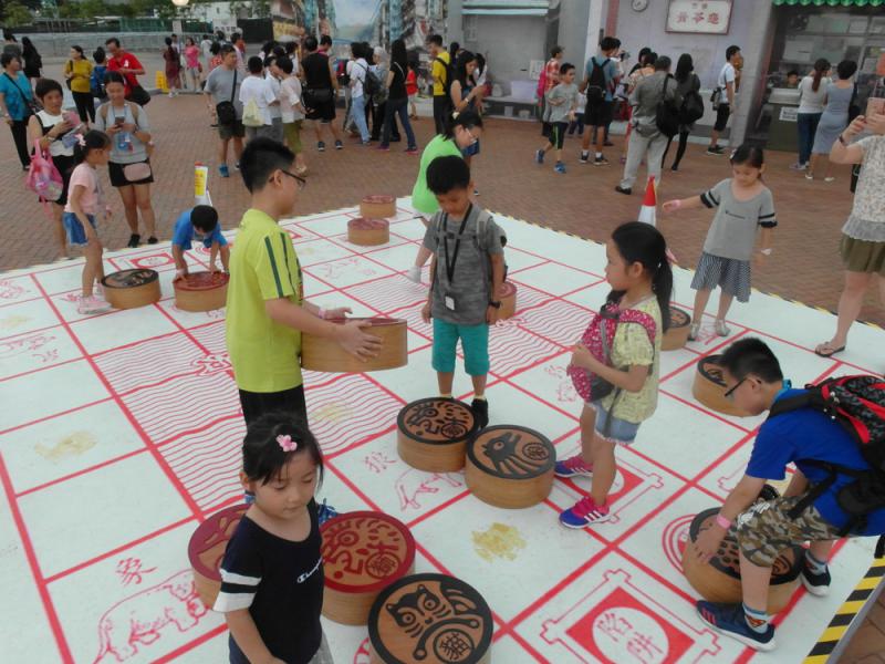 圖:小朋友置身於「鬥獸棋」大型棋盤布置\大公報記者徐曉彤攝