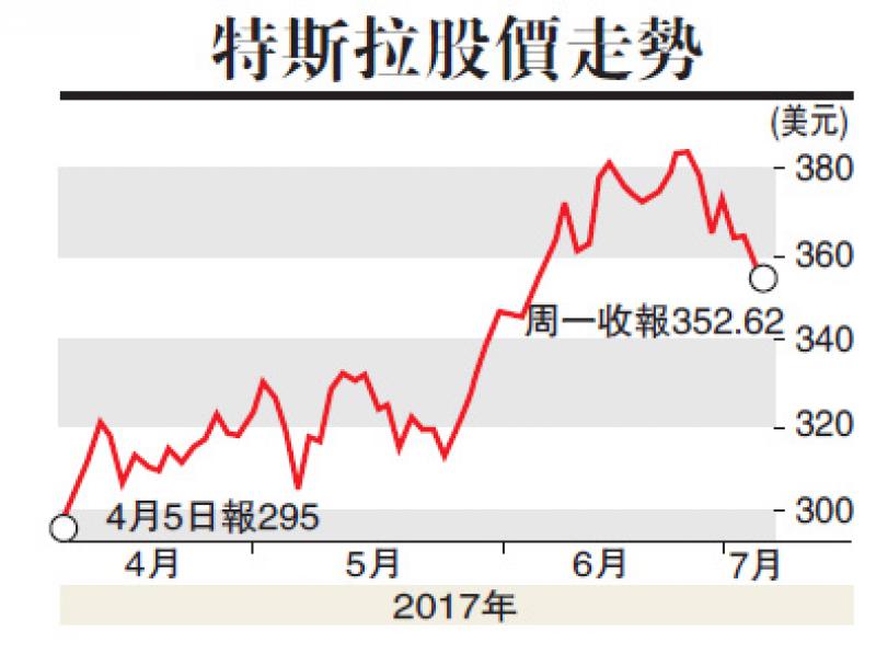 美國汽車銷售數據供應商Autodata統計顯示,六月整體汽車銷量下跌了3%,而年化銷售額則跌至1650萬輛,較一年前錄得的1680輛為少。美股周二獨立日假期休市,特斯拉股價周一收報352.62美元,跌2.5%。