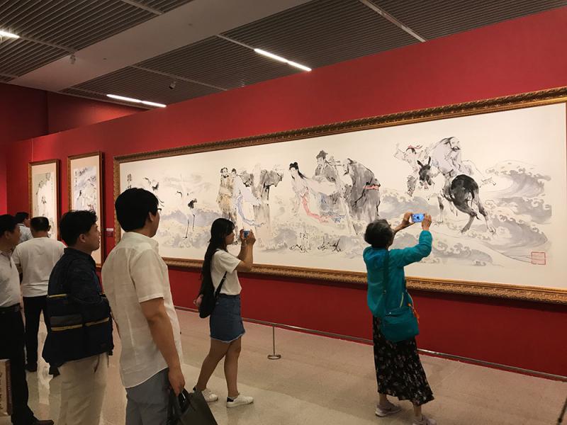 圖:觀眾在范曾的書畫作品前紛紛拍照