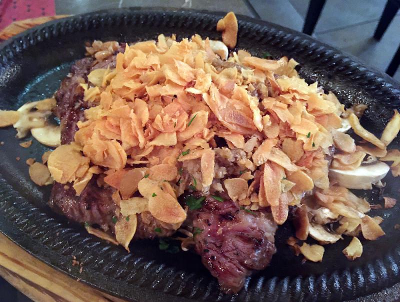 圖:鋪滿蒜片的肉眼排,令愛吃大蒜的人為之瘋狂