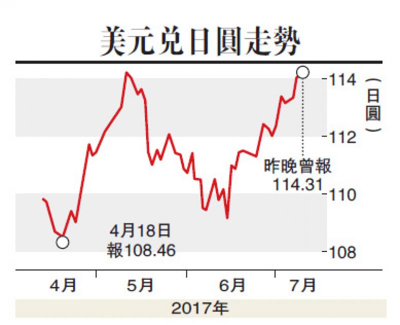 【大公報訊】美元兌日圓在昨日曾升至兩個月以來最高,原因是美國上周公布的理想就業數據刺激長債孳息續升。然而,投資者在美國聯儲局主席耶倫本周三講話前,大多採取較審慎的態度。