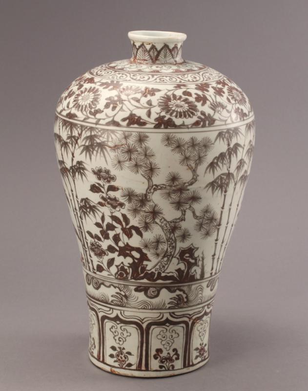 圖:明早期釉裏紅歲寒三友圖梅瓶/南京市博物館供圖