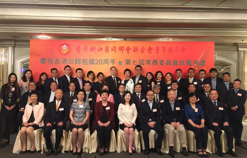 圖:香港浙江省同鄉會聯合會青年委員會慶祝香港回歸祖國20周年暨第七屆常務委員會就職典禮賓主合影