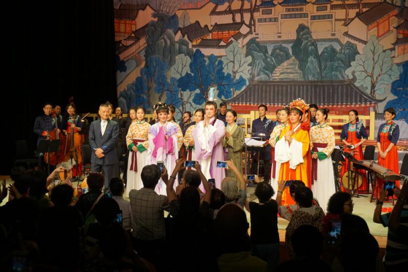 圖:演出結束後,戲迷捨不得離場,爭相留影\大公報記者謝敏嫻攝