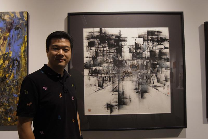 圖:新會員何紀嵐,其旁作品為《香港格式—街頭5》 大公報記者劉毅攝