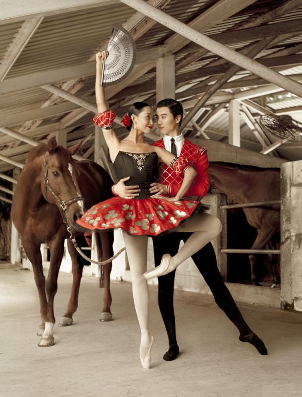 圖:港芭舞蹈員魏巍(左)、金瑤拍攝《唐吉訶德》宣傳照 Ricky Lo攝