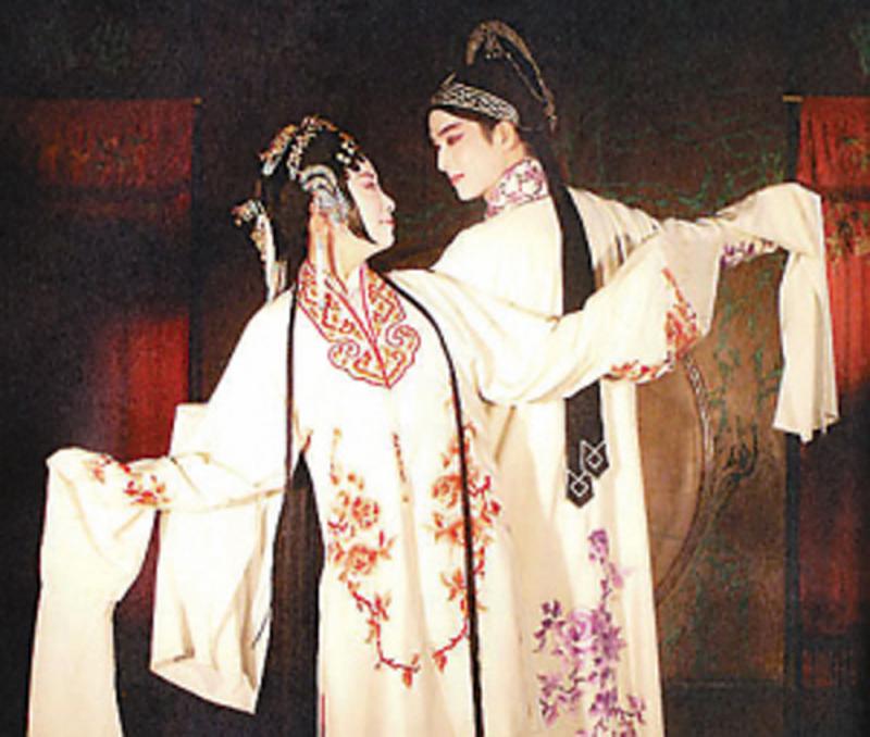 驀地,幻化為杜麗娘倩影,「則為你如花美眷,似水流年」,她以袖遮面,滿懷少女嬌羞,聆聽書生柳夢梅傾吐內心愛慕;漸漸地,她投下水袖,不經意間,與柳郎投來水袖,如閃電般一觸,秋波暗送,情深如許。