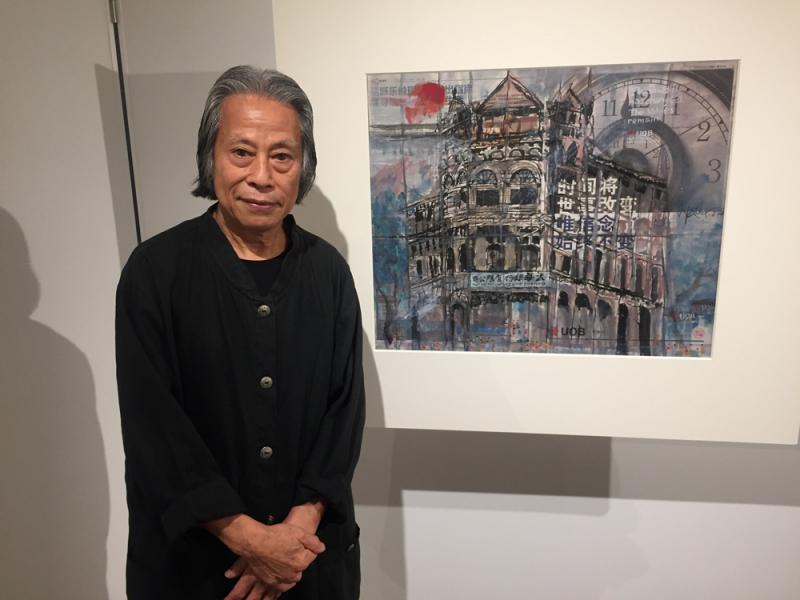 圖:水禾田及其描繪昔日大華銀行舊貌的作品
