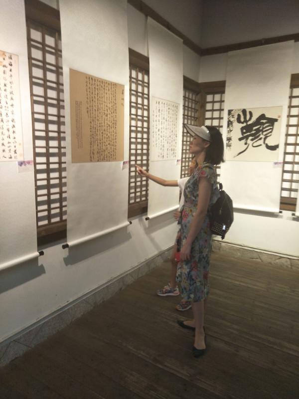 記者在展覽現場看到,書法展中有來自台灣書法家張天健的《詩經》、劉光毅的《明洪應明〈菜根譚句〉》、藍仕豪的《文以載道》等,佳作頻現,或古穆凝重、圓潤含蓄;或恣肆暢達、活潑飄逸;或空靈自然、渾融無跡,黑白相間、疾徐吞吐,一片胸臆淋漓。