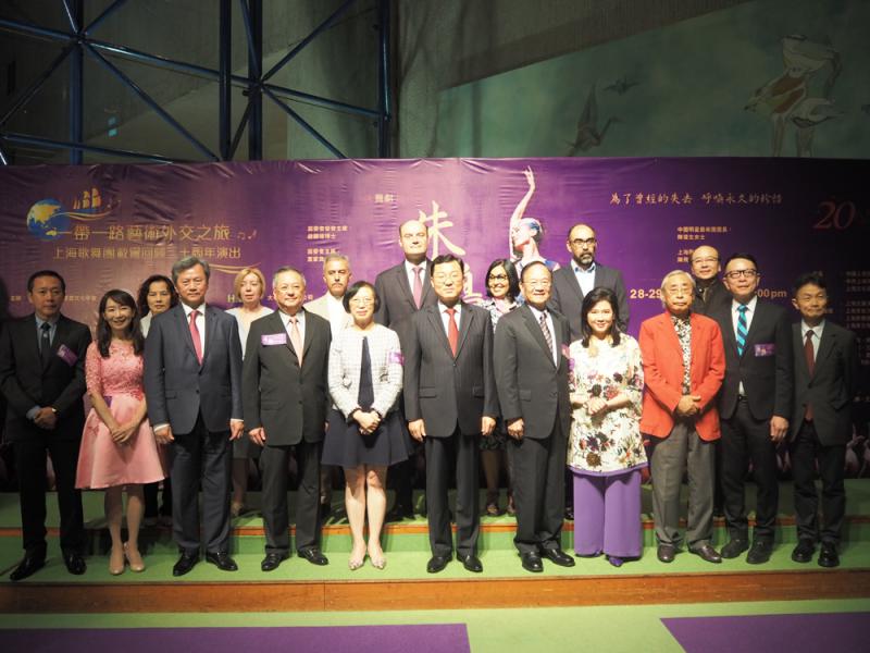 【大公報訊】記者湯艾加、李亞清報道:為慶祝香港回歸祖國二十周年,以及紀念中華人民共和國外交部扶貧辦成立二十五周年,上海歌舞團一行八十五人再臨香江,獻演原創舞劇《朱䴉》,為香港人民帶來祥鳥的祝福。演出於昨日及今日在香港演藝學院歌劇院舉行兩場。此程演出由中國人民對外友好協會會長李小林任出品人、國務委員楊潔篪夫人樂愛妹任榮譽顧問、原外交部部長李肇星夫人秦小梅任榮譽主席、周恩來侄女周秉德任榮譽團長。