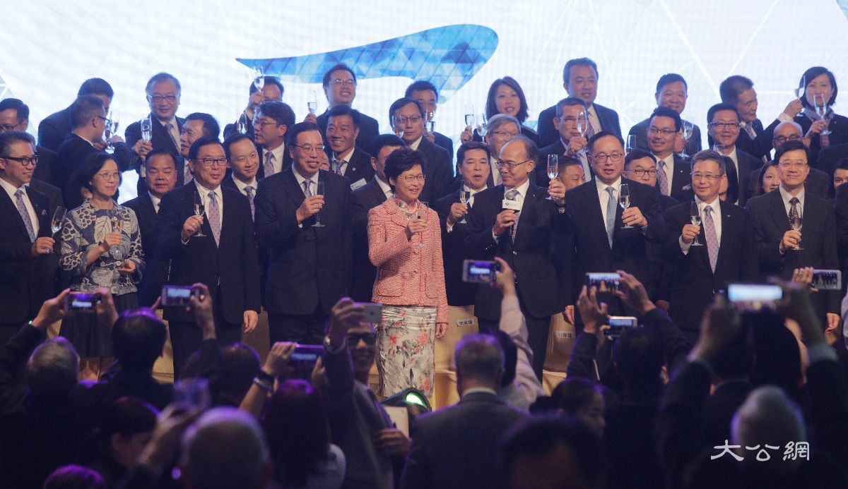 大公網7月31日訊 行政長官林鄭月娥(林太)今晚同財政司司長陳茂波、五位局長一齊出席工總第58屆會員周年大會晚宴,佢話由咁多位主要官員陪佢一齊出席,就證明特區政府對工總工作嘅認同、支持,亦反映政府特別重視團隊精神。