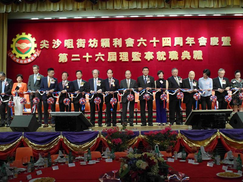 圖:尖沙咀街坊福利會成立64周年會慶暨第26屆理監事就職典禮,賓主一同主持剪綵儀式/大公報記者徐曉彤攝